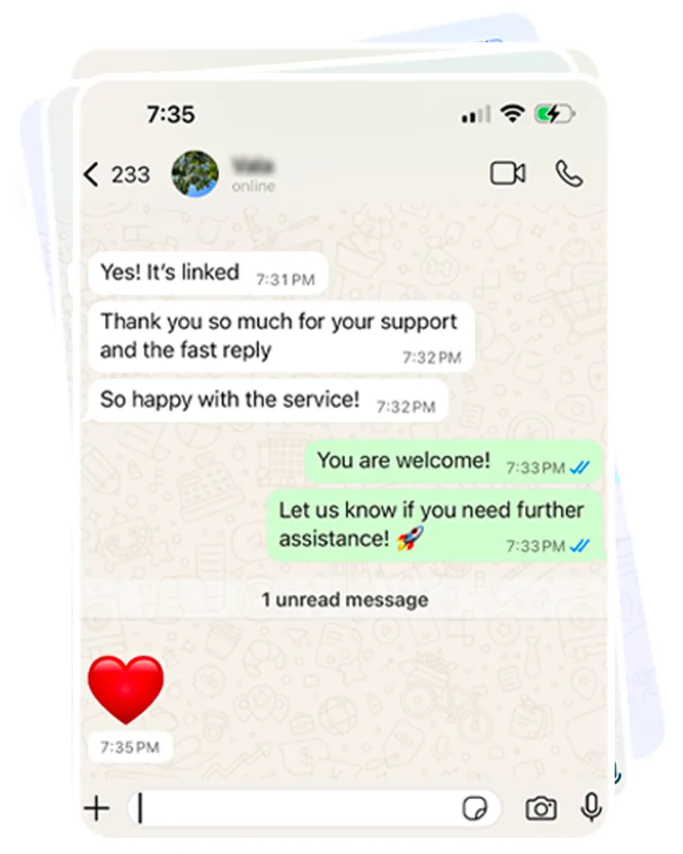 Link first 5 WhatsApp devices at no extra charge. Add additional devices at $29/month.