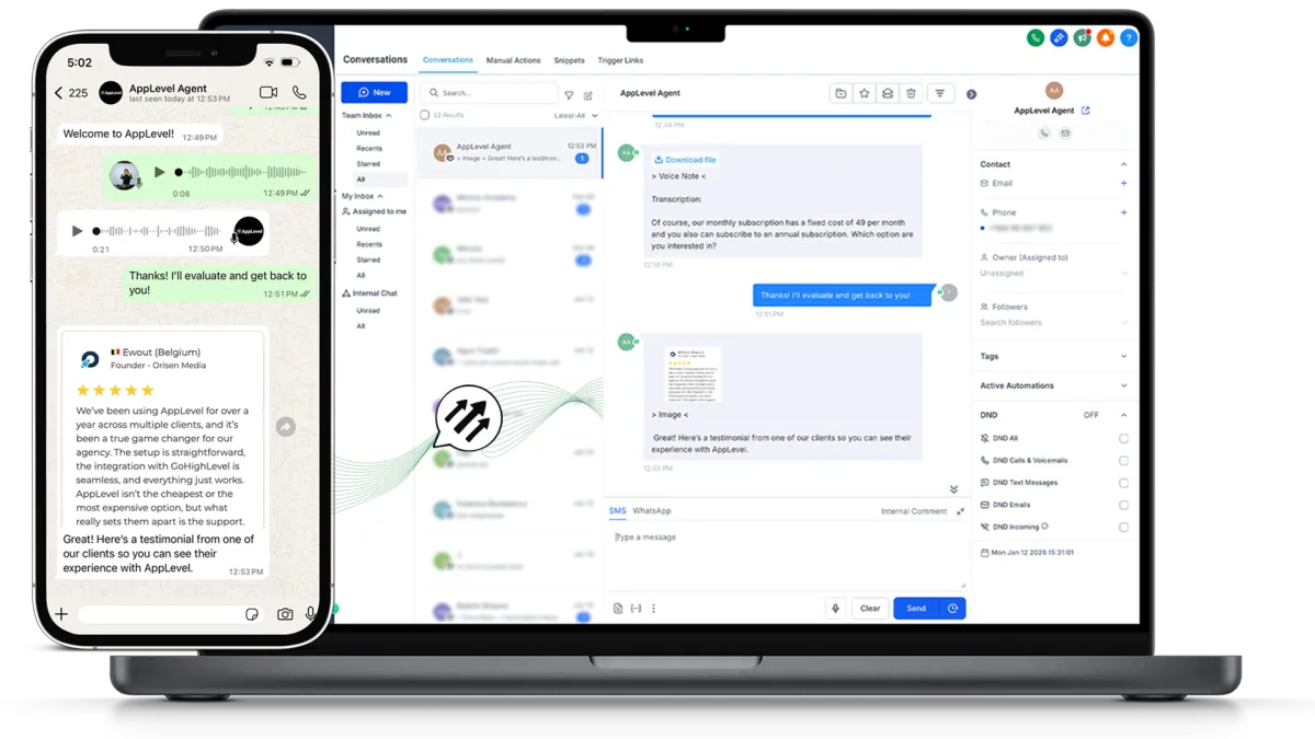Automate conversations, sync them with your GoHighLevel CRM, and prevent chats from getting lost on your team’s phones.