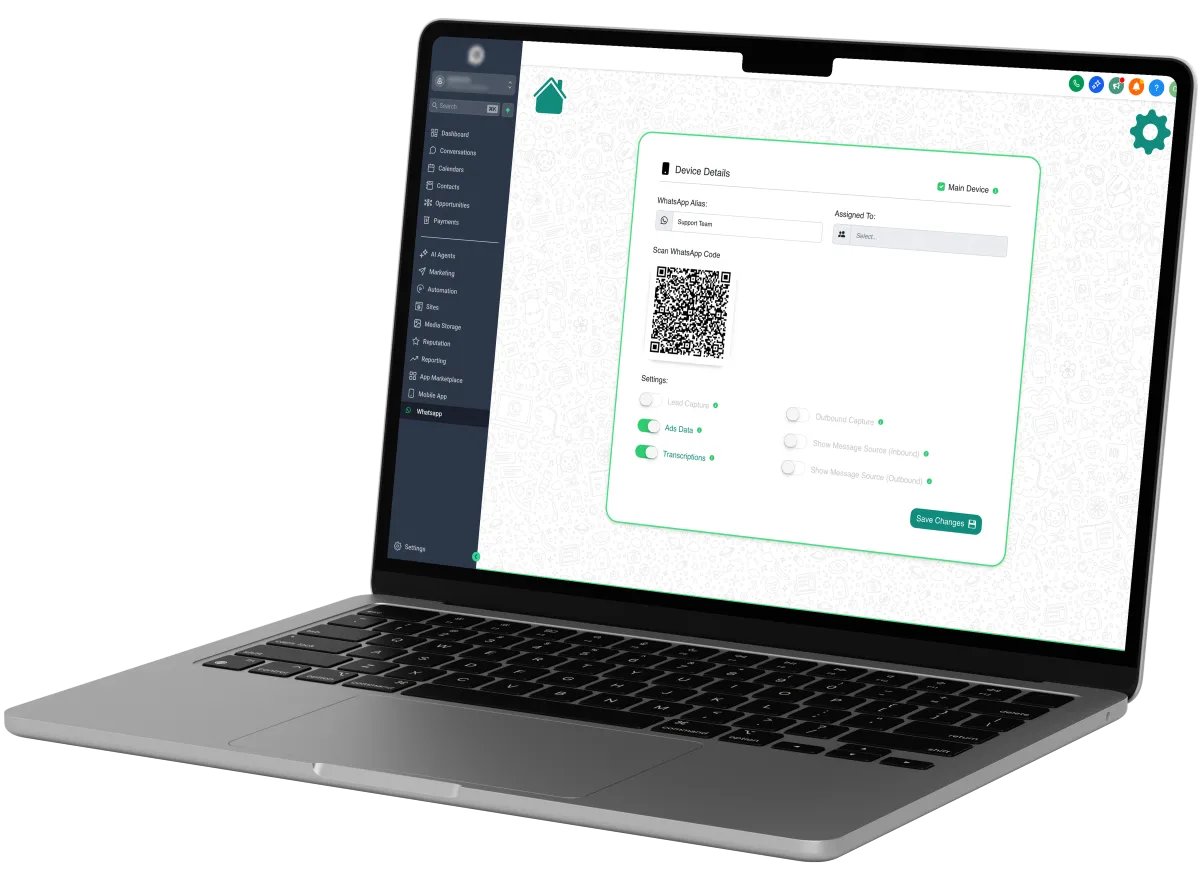 Scan the QR Code, connect your phone and have all WhatsApp messages appear inside your GoHighLevel account!